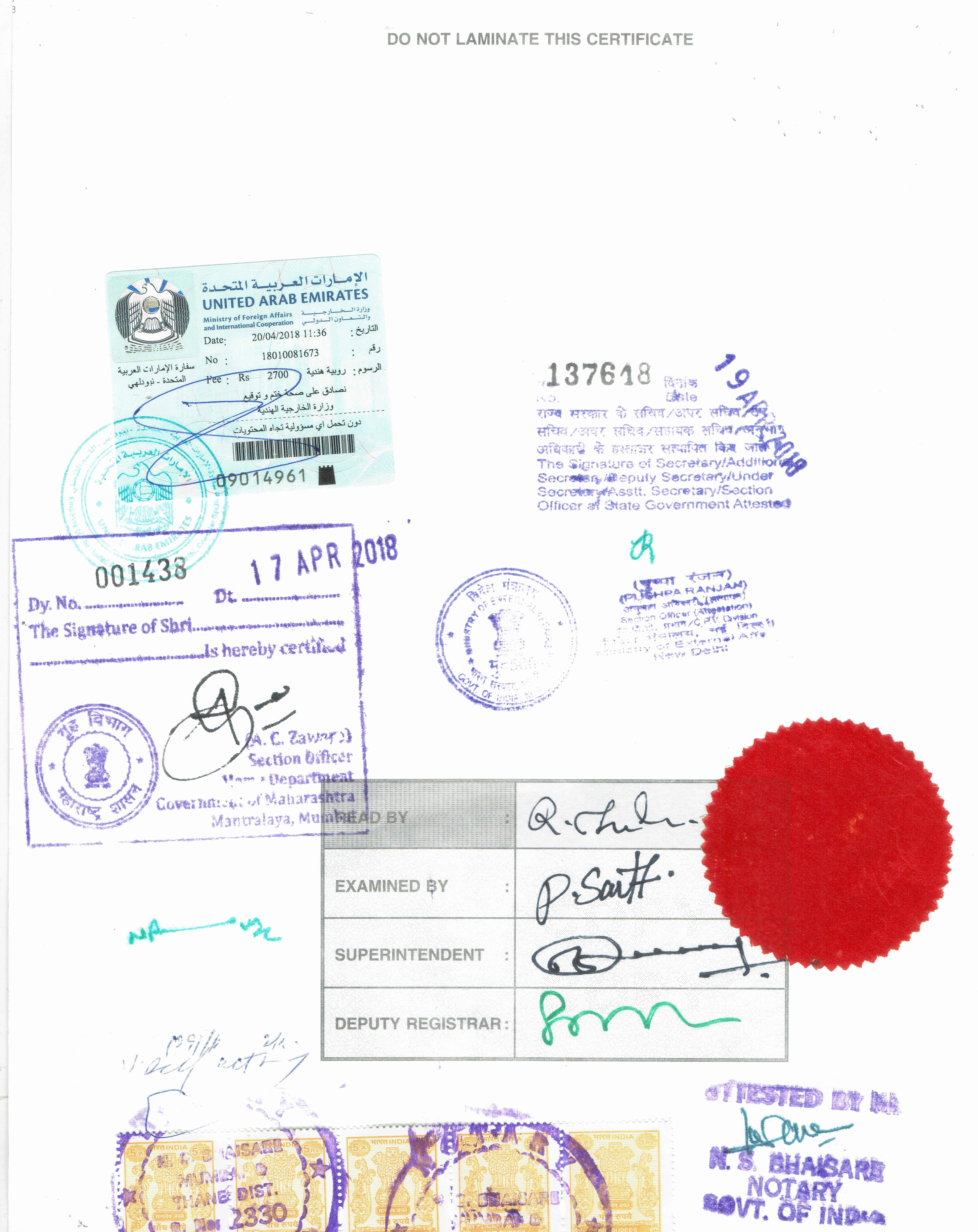 If the person is going to a Non Hague Conventional Country then the Experience Certificate will be Attested and Legalized from the Embassy or Consulate of the destination Country present in India. Prior Embassy Attestation of Experience Certificate it will be Attested from Notary Public, Attestation from State Level as mentioned above and the Attestation from Ministry of External Affairs (MEA), Delhi, Mumbai, Chennai, Kolkata, Hyderabad, Guwahati, Chandigarh, Govt. of India.