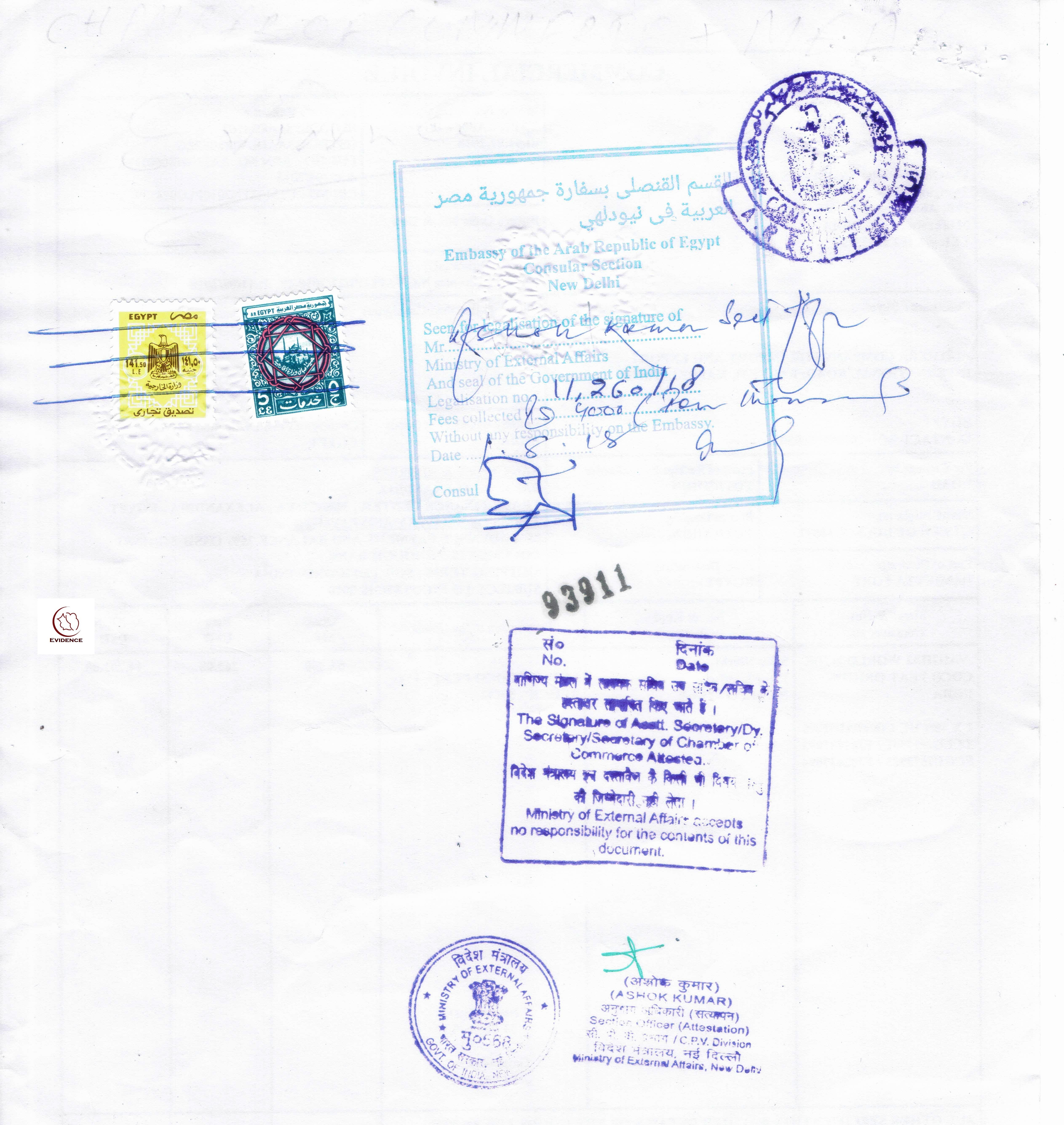 After Chambers of Commerce Attestation of Commercial Document it will be Attested from Ministry of External Affairs (MEA), Delhi, Mumbai, Chennai, Kolkata, Guwahati, Hyderabad, Chandigarh, India. If the destination Country is a Hague Conventional Country (HCC) then the Apostille from Ministry of External Affairs (MEA) is the final process. Otherwise the Commercial Document will be Legalized from the Embassy or Consulate present in India of the destination Country.
