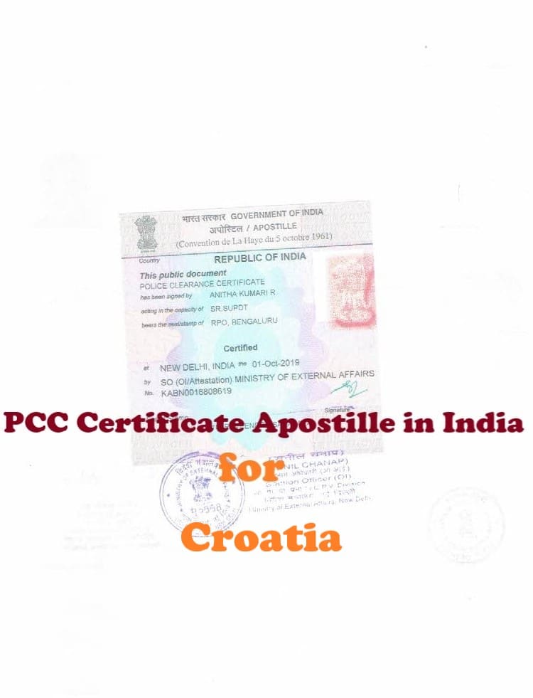 On the other hand, if the Police Clearance Certificate (PCC) or non Criminal Record Certificate has been issued from Local Police State then the PCC Apostille for Croatia will be done from Ministry of External Affairs (MEA), Govt. of India after the Attestation of State Level Attestation Department like Regional Attestation Center (RAC), General Administrative Department (GAD), Home Department, Secretariat, Commissioner etc. and the Attestation from Notary Public.