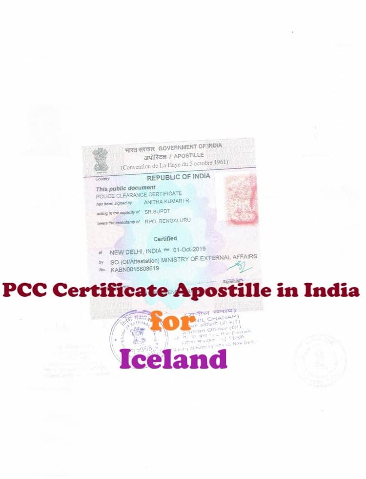 Iceland is a Hague Conventional Country (HCC) as such when an Indian Citizen is going Iceland for Study or Job purpose then they need to Apostille their Police Clearance Certificate / PCC or No-Criminal Record Certificate from Ministry of External Affairs / MEA, Govt. of India in Delhi, Mumbai, Chennai, Kolkata, Guwahati, Hyderabad, Chandigarh, India. The detail process of PCC Certificate Apostille Attestation for Iceland is mentioned hereunder.