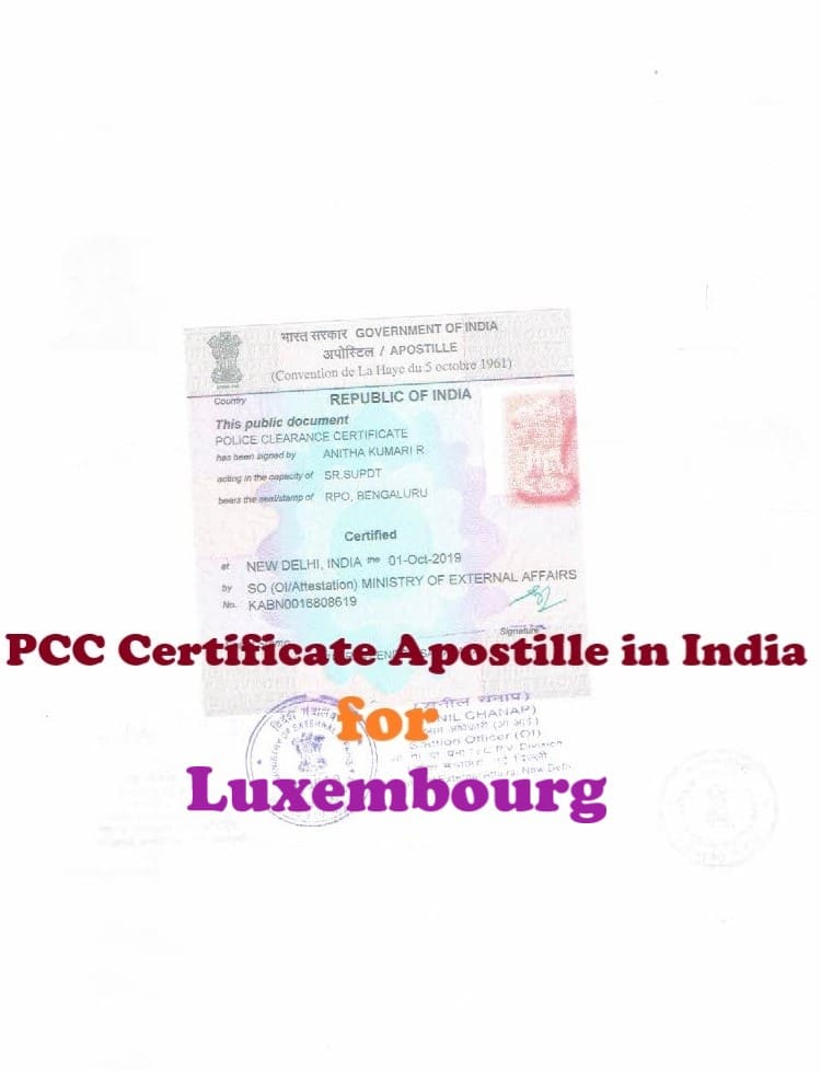 Luxembourg is a Hague Conventional Country (HCC) as such when an Indian Citizen is going Luxembourg for Study or Job purpose then they need to Apostille their Police Clearance Certificate / PCC or No-Criminal Record Certificate from Ministry of External Affairs / MEA, Govt. of India in Delhi, Mumbai, Chennai, Kolkata, Guwahati, Hyderabad, Chandigarh, India. The detail process of PCC Certificate Apostille Attestation for Luxembourg is mentioned hereunder.