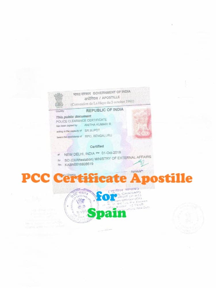 Spain is a Hague Conventional Country (HCC) as such when an Indian Citizen is going Spain for Study or Job purpose then they need to Apostille their Police Clearance Certificate / PCC or No-Criminal Record Certificate from Ministry of External Affairs / MEA, Govt. of India in Delhi, Mumbai, Chennai, Kolkata, Guwahati, Hyderabad, Chandigarh, India. The detail process of PCC Certificate Apostille Attestation for Spain is mentioned hereunder.