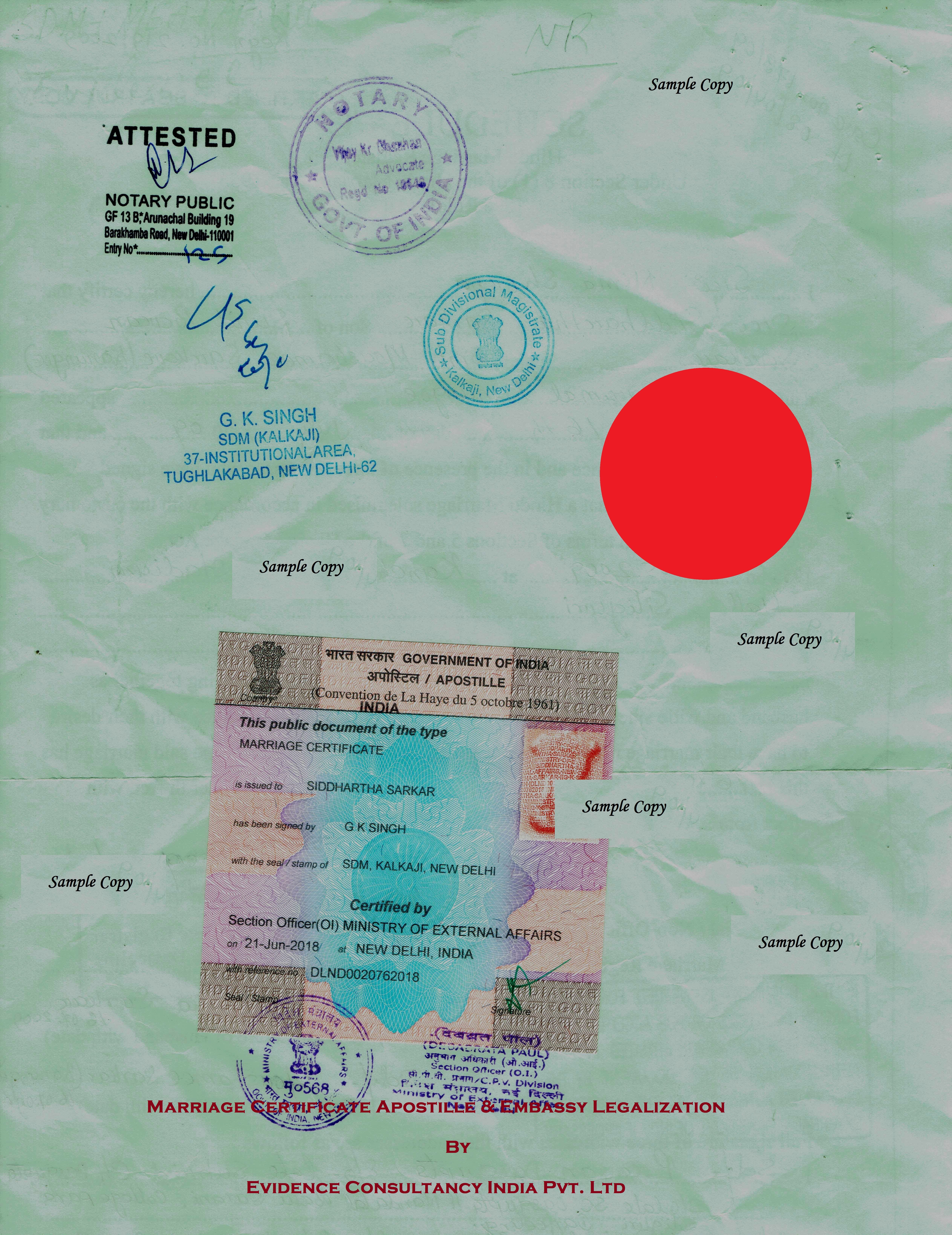 Marriage Certificate is a proof and evidence of Marriage of a couple, it also witnessed the name of parents or legal guardians, Nationality, place of Marriage, address or married couple at the time of Marriage etc. The Marriage Certificate is a mandatory and very crucial Document for every Married citizen. When an Married Indian is planning to go overseas along with his/her spouse for any purpose, then Attested or Apostilled Marriage Certificate is required.